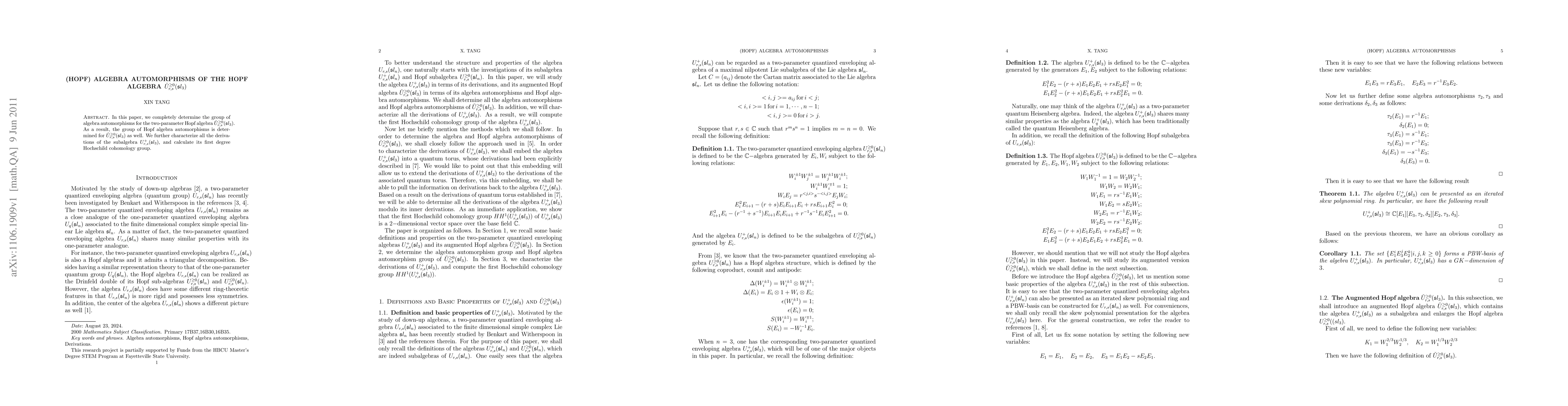 This paper determines the group of algebra automorphisms for the two-parameter Hopf algebra ${ ilde U}^{ geq 0}_{r,s}({rak sl_3})$, providing implications for derivations of its subalgebra and Hochschild cohomology.