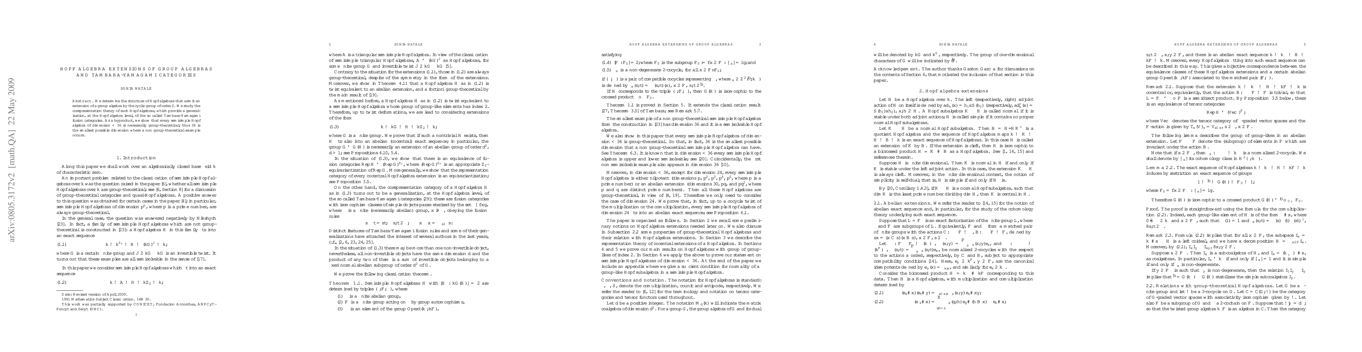This paper explores Hopf algebra extensions of group algebras by cyclic groups of order 2, elucidating their corepresentation theory. It establishes that every semisimple Hopf algebra of dimension less than 36 is group-theoretical, with 36 being the minimum dimension for non group-theoretical examples.