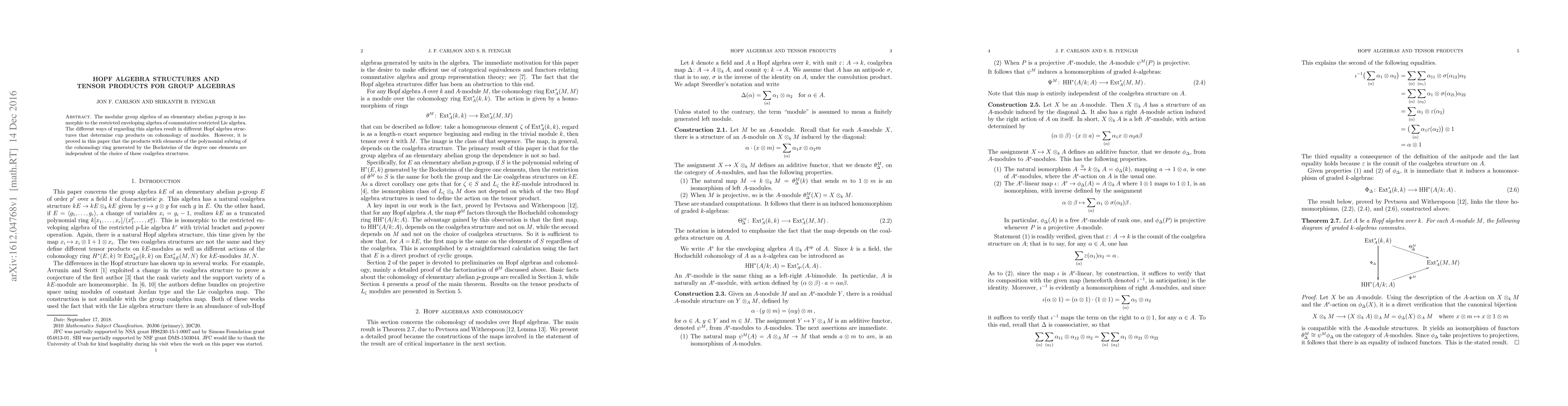 The modular group algebra of an elementary abelian p-group is isomorphic to the restricted enveloping algebra of commutative restricted Lie algebra. The different ways of regarding this algebra result in different Hopf algebra structures that determine cup products on cohomology of modules. However, it is proved in this paper that the products with elements of the polynomial subring of the cohomology ring generated by the Bocksteins of the degree one elements are independent of the choice of these coalgebra structures.