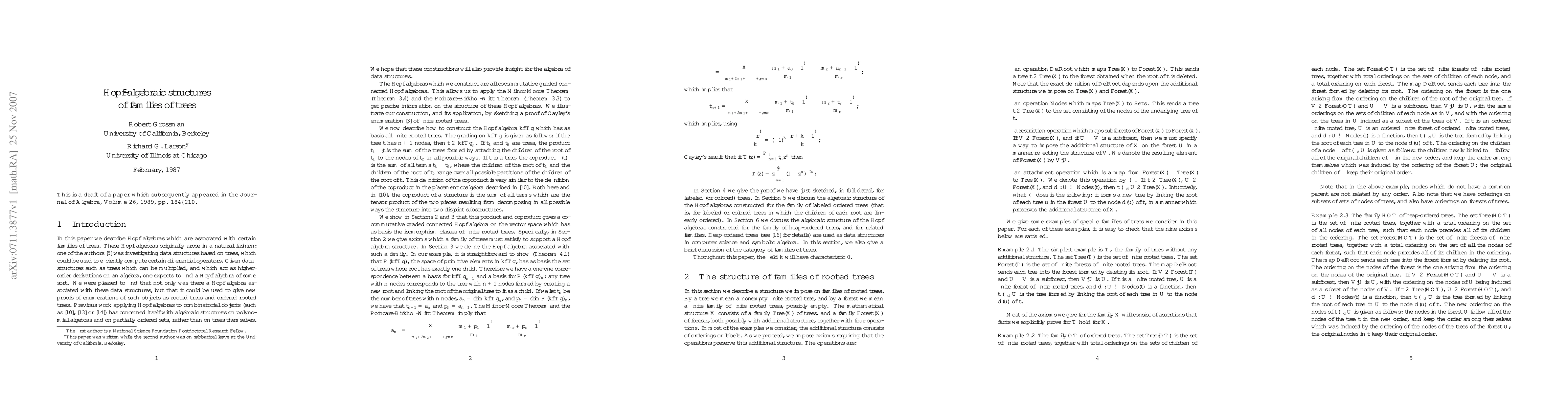 Description of cocommutative Hopf algebras associated with families of trees. Applications include Cayley's theorem on the number of rooted trees with n nodes, and Catalan's theorem on the number of rooted ordered trees with n nodes.