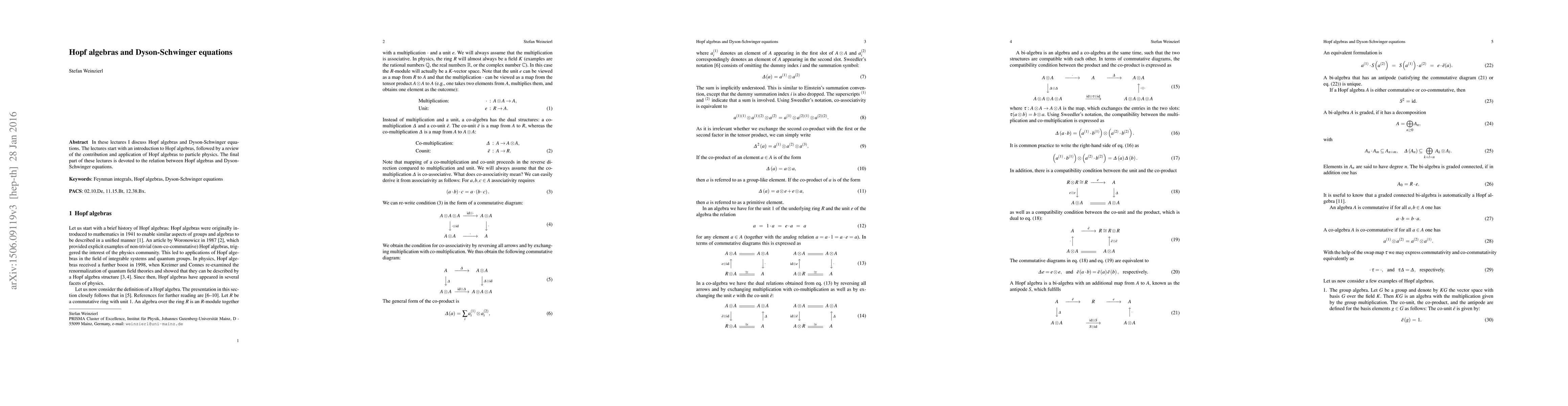 Summary: This paper introduces Hopf algebras and explores their relevance in particle physics, particularly focusing on their connection to Dyson-Schwinger equations, which are fundamental in understanding the behavior of quantum fields.