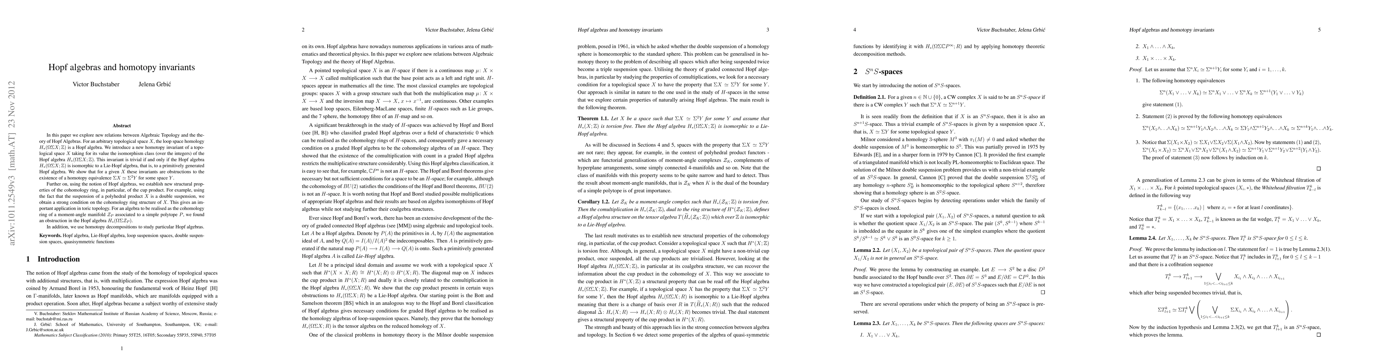 This paper establishes new connections between Algebraic Topology and Hopf Algebras, introducing a homotopy invariant based on the loop space homology of a topological space. The invariant detects the existence of a homotopy equivalence between certain spaces and reveals structural properties of cohomology rings, particularly in toric topology.