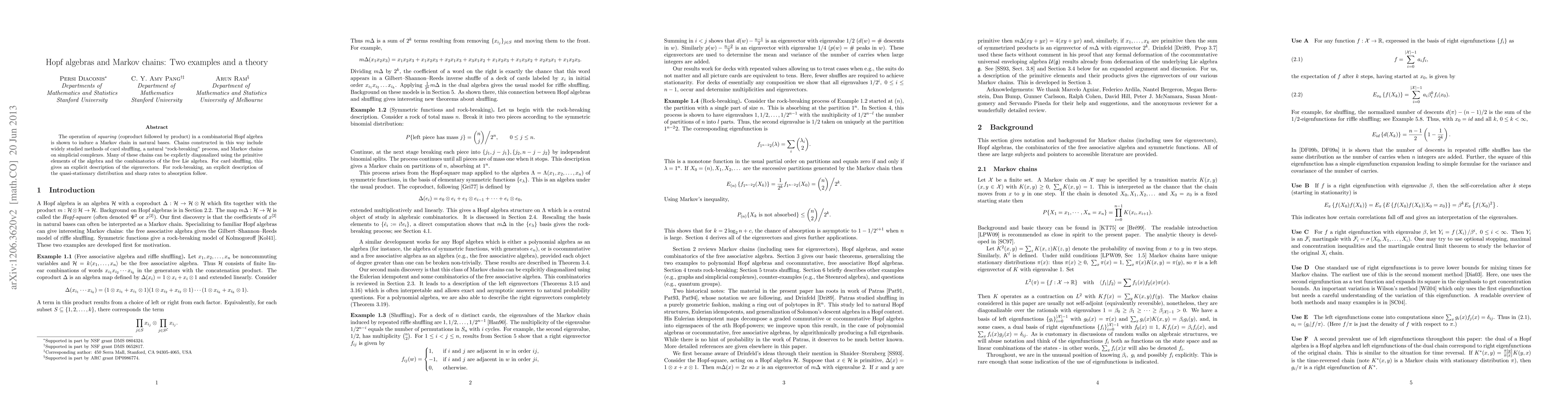 The operation of squaring (coproduct followed by product) in a combinatorial Hopf algebra is shown to induce a Markov chain in natural bases. Chains constructed in this way include widely studied methods of card shuffling, a natural "rock-breaking" process, and Markov chains on simplicial complexes. Many of these chains can be explictly diagonalized using the primitive elements of the algebra and the combinatorics of the free Lie algebra. For card shuffling, this gives an explicit description of the eigenvectors. For rock-breaking, an explicit description of the quasi-stationary distribution and sharp rates to absorption follow.