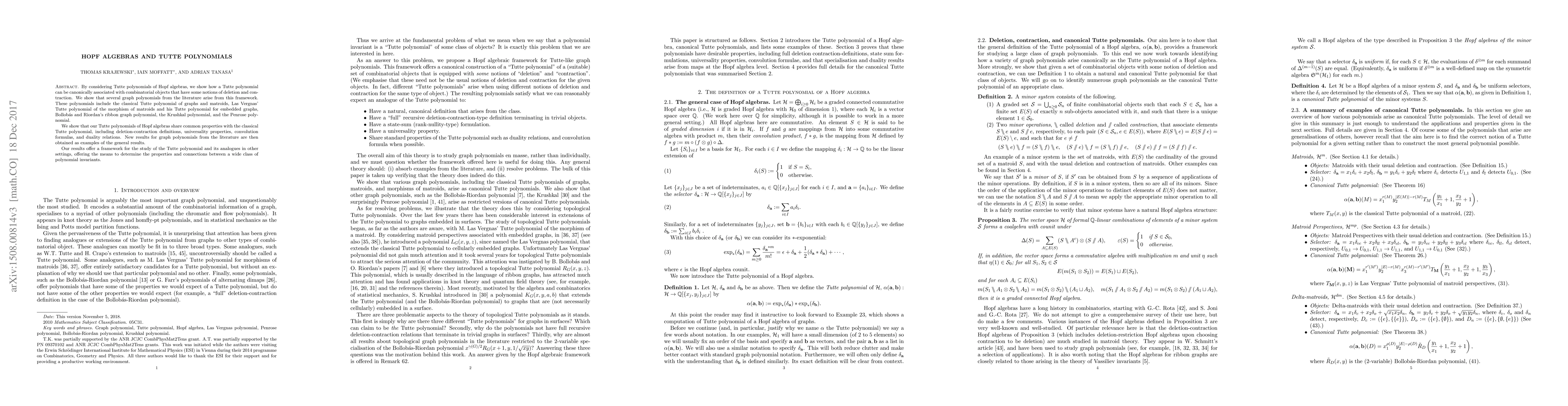 This paper associates Tutte polynomials with Hopf algebras, demonstrating how these polynomials arise from combinatorial objects with deletion and contraction properties. It shows that several well-known graph polynomials fit into this framework, highlighting shared properties with the classical Tutte polynomial and providing new results for graph polynomials.