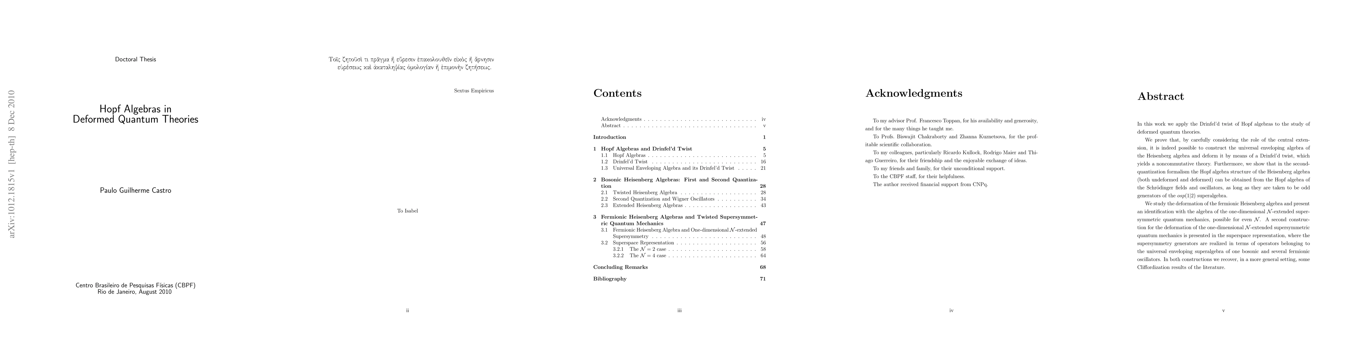 This paper applies Hopf algebras to deformed quantum theories, showing that it's possible to construct the universal enveloping algebra of the Heisenberg algebra and deform it through a Drinfel'd twist, recovering Cliffordization results in more general settings.