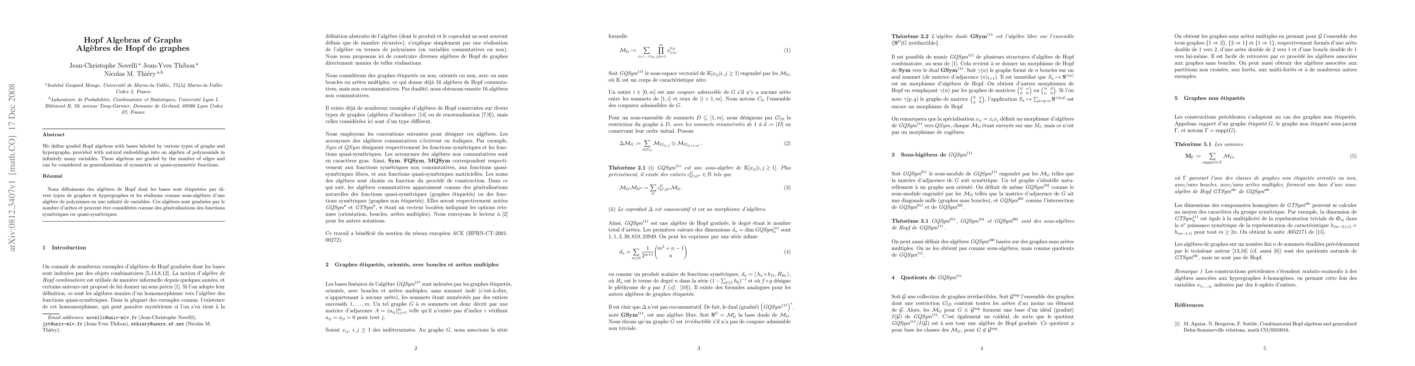 We define graded Hopf algebras with bases labeled by various types of graphs and hypergraphs, provided with natural embeddings into an algebra of polynomials in infinitely many variables. These algebras are graded by the number of edges and can be considered as generalizations of symmetric or quasi-symmetric functions.