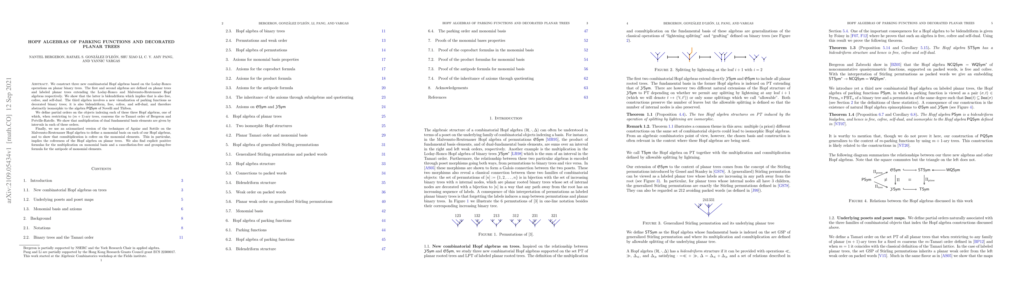 This paper constructs three new combinatorial Hopf algebras based on planar binary trees and parking functions. The algebras extend existing structures and demonstrate properties such as bidendriformality, freeness, cofreeness, and self-duality, with a focus on multiplication and comultiplication formulas for monomial bases.