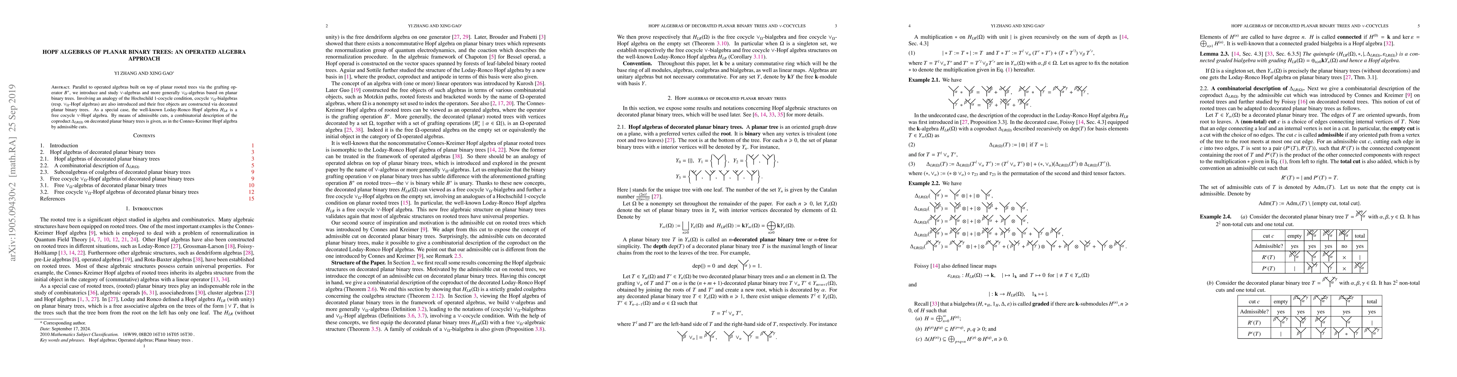 Parallel to operated algebras built on top of planar rooted trees via the grafting operator $B^+$, we introduce and study $\vee$-algebras and more generally $\vee_\Omega$-algebras based on planar binary trees. Involving an analogy of the Hochschild 1-cocycle condition, cocycle $\vee_\Omega$-bialgebras (resp.~$\vee_\Omega$-Hopf algebras) are also introduced and their free objects are constructed via decorated planar binary trees. As a special case, the well-known Loday-Ronco Hopf algebra $H_{LR}$ is a free cocycle $\vee$-Hopf algebra. By means of admissible cuts, a combinatorial description of the coproduct $\Delta_{LR(\Omega)}$ on decorated planar binary trees is given, as in the Connes-Kreimer Hopf algebra by admissible cuts.
