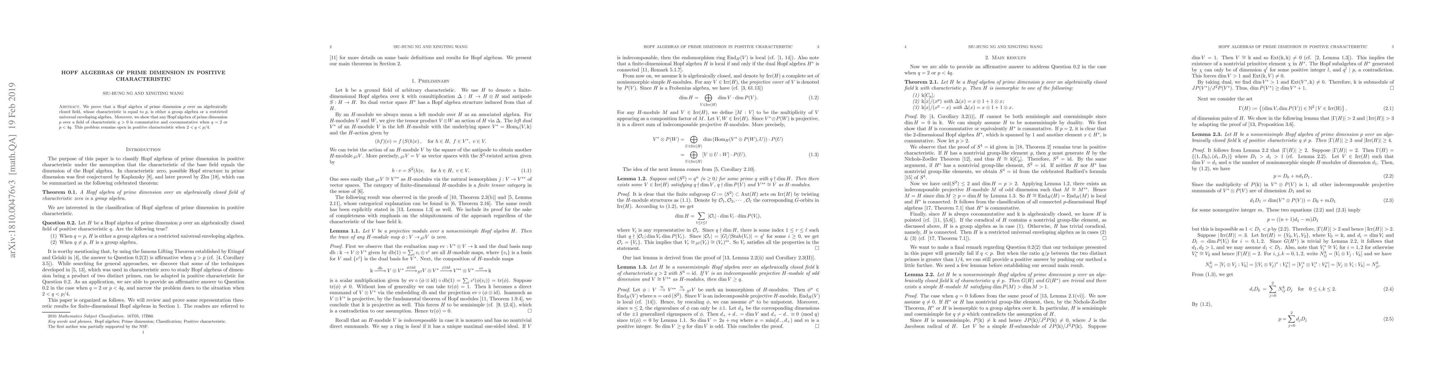A study on Hopf algebras of prime dimension proves they are either group algebras or restricted universal enveloping algebras over specific field conditions.