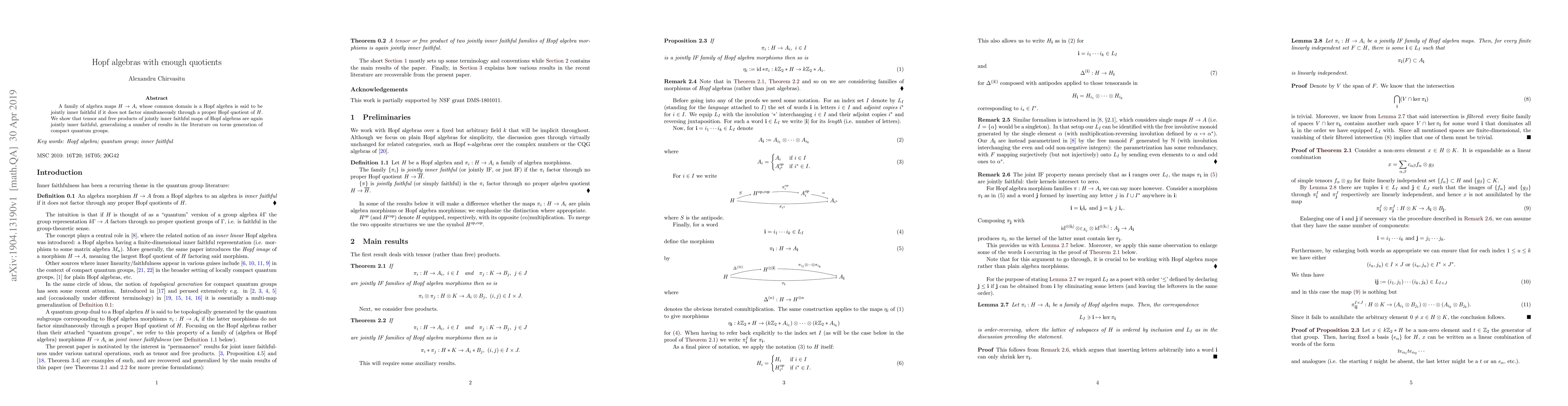 The research explores Hopf algebras with enough quotients, focusing on families of Hopf algebra maps and their properties, such as jointly inner faithfulness, and extending results on torus generation of compact quantum groups.