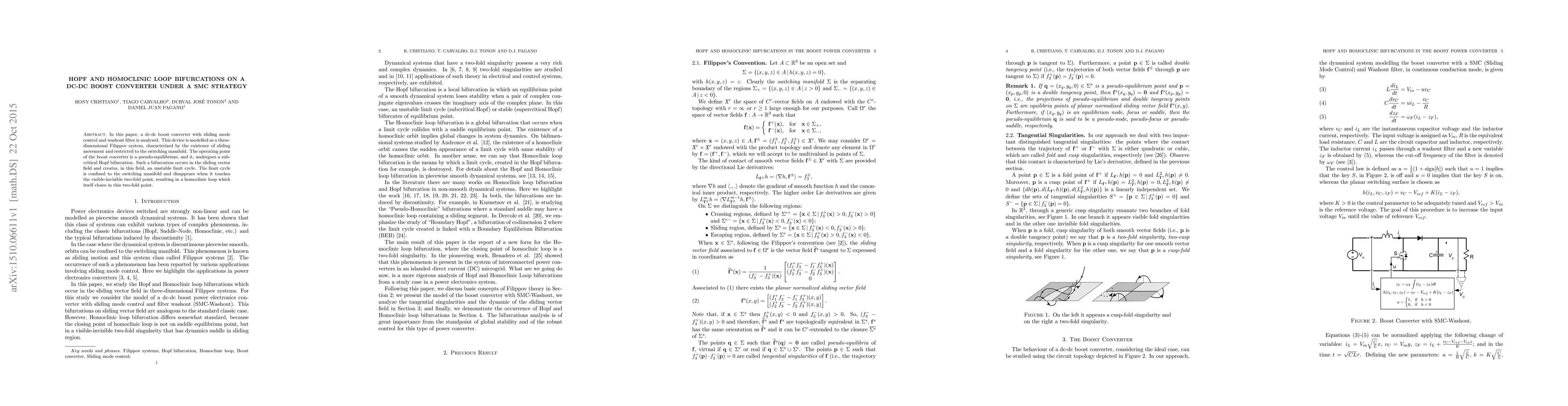 This paper analyzes a DC-DC boost converter with sliding mode control, modeling it as a three-dimensional Filippov system. It identifies a subcritical Hopf bifurcation leading to an unstable limit cycle on the switching manifold, which eventually forms a homoclinic loop at a two-fold point.