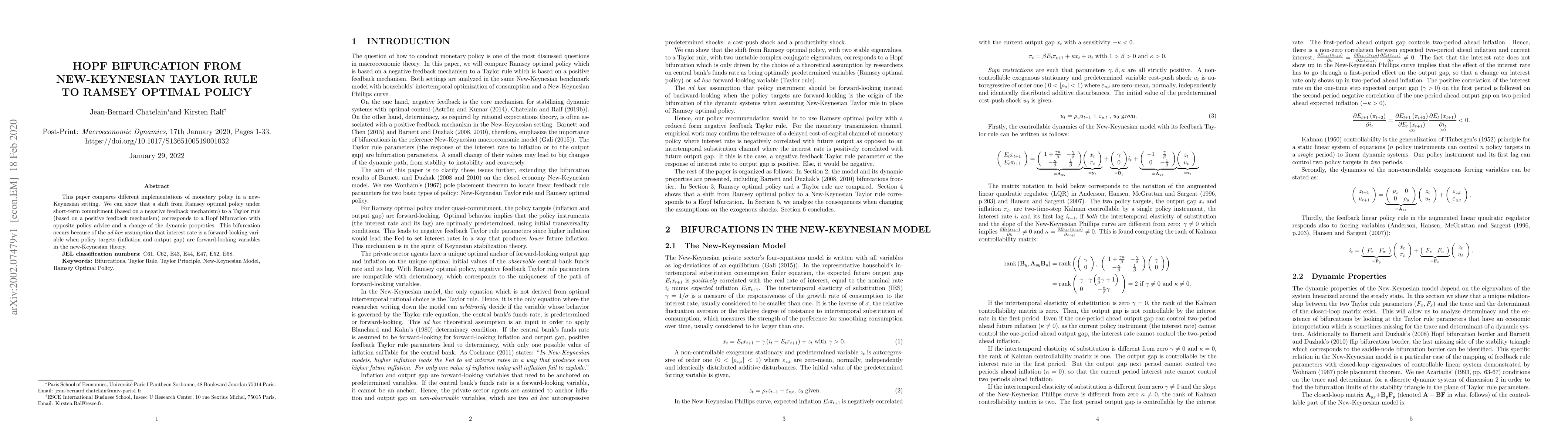 This paper examines the transition from Ramsey optimal policy to a Taylor rule in a new-Keynesian framework, revealing a Hopf bifurcation due to the assumption of interest rates as forward-looking variables amidst forward-looking policy targets, altering dynamic properties and policy advice.