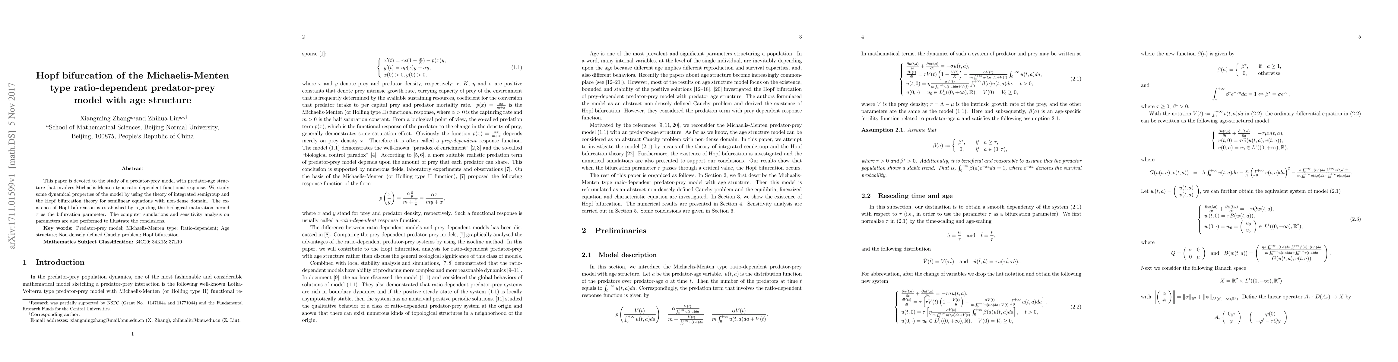 This paper investigates a predator-prey model with a predator age structure and Michaelis-Menten ratio-dependent response, establishing the existence of Hopf bifurcation through the maturation period $\tau$. Simulations and parameter sensitivity analyses support the theoretical findings.
