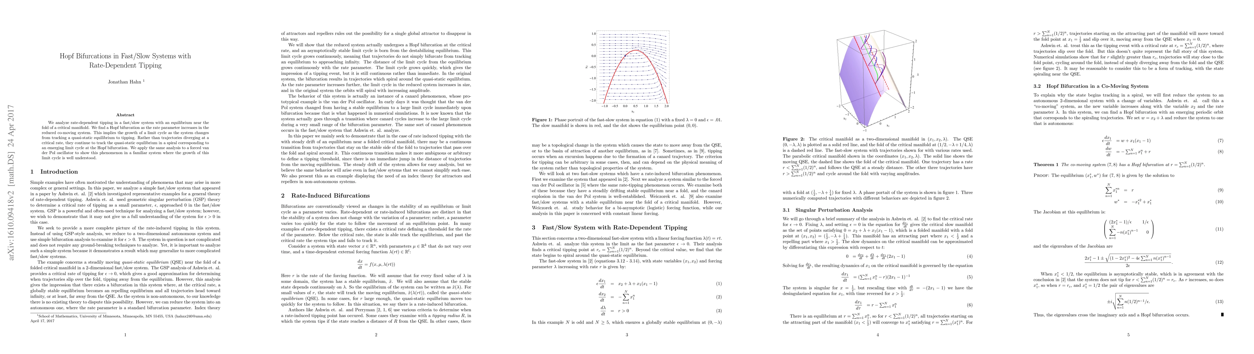 This paper investigates rate-dependent tipping in fast/slow systems, revealing a Hopf bifurcation that leads to the emergence of a limit cycle as the rate parameter increases. Instead of divergence, trajectories spiral towards the quasi-static equilibrium, demonstrating the phenomenon in both a theoretical model and a forced van der Pol oscillator.