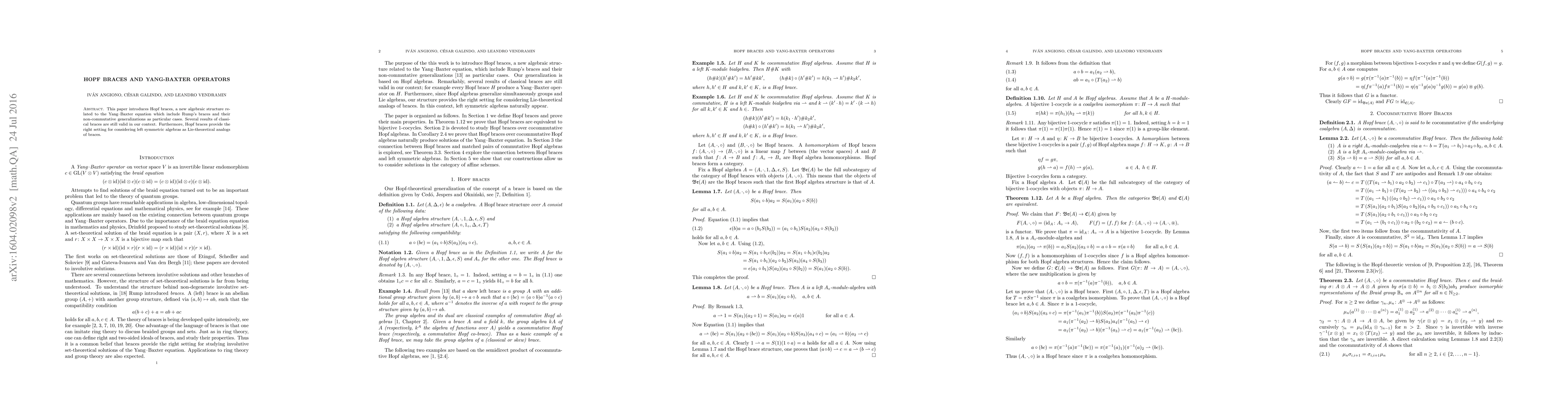 This paper introduces Hopf braces, an algebraic structure related to the Yang-Baxter equation encompassing Rump's braces and their non-commutative versions, while preserving classical brace results, and serves as a basis for studying left symmetric algebras as Lie-theoretical analogs.
