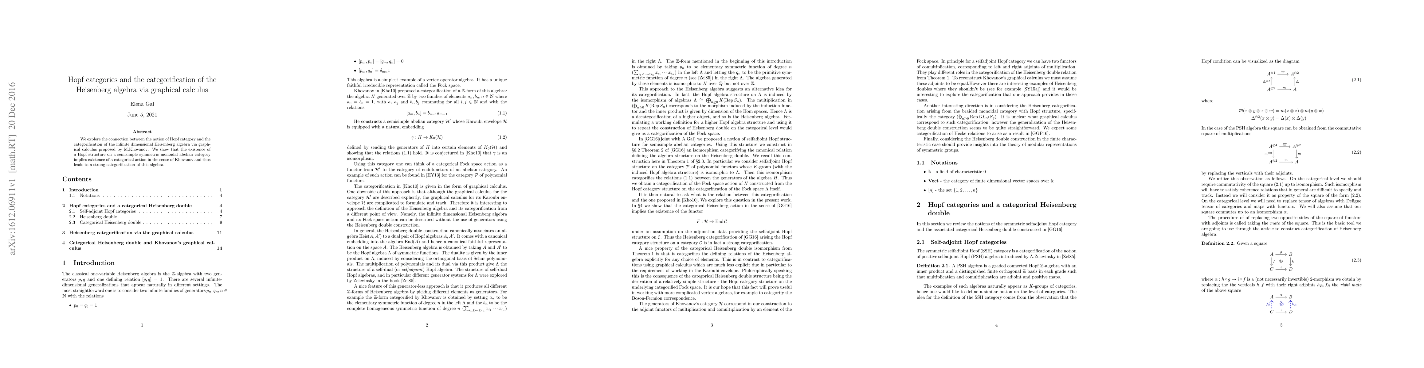 We explore the connection between the notion of Hopf category and the categorification of the infinite dimensional Heisenberg algebra via graphical calculus proposed by M.Khovanov. We show that the existence of a Hopf structure on a semisimple symmetric monoidal abelian category implies existence of a categorical action in the sense of Khovanov and thus leads to a strong categorification of this algebra.
