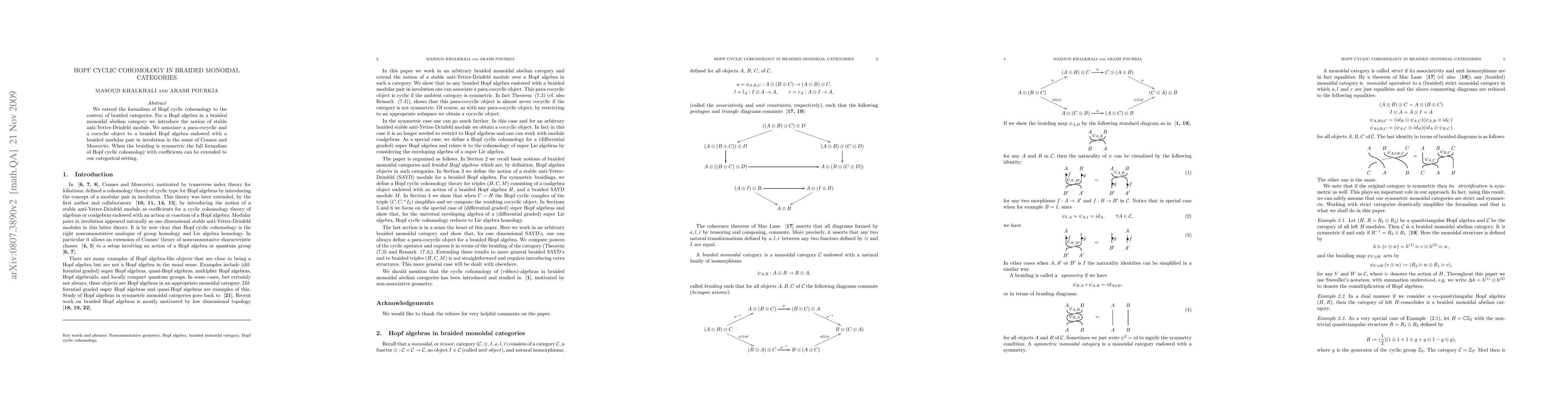 This paper extends Hopf cyclic cohomology to braided monoidal categories, introducing stable anti-Yetter-Drinfeld modules for Hopf algebras and associating para-cocyclic and cocyclic objects to braided Hopf algebras. The full formalism is extended to symmetric braiding settings.