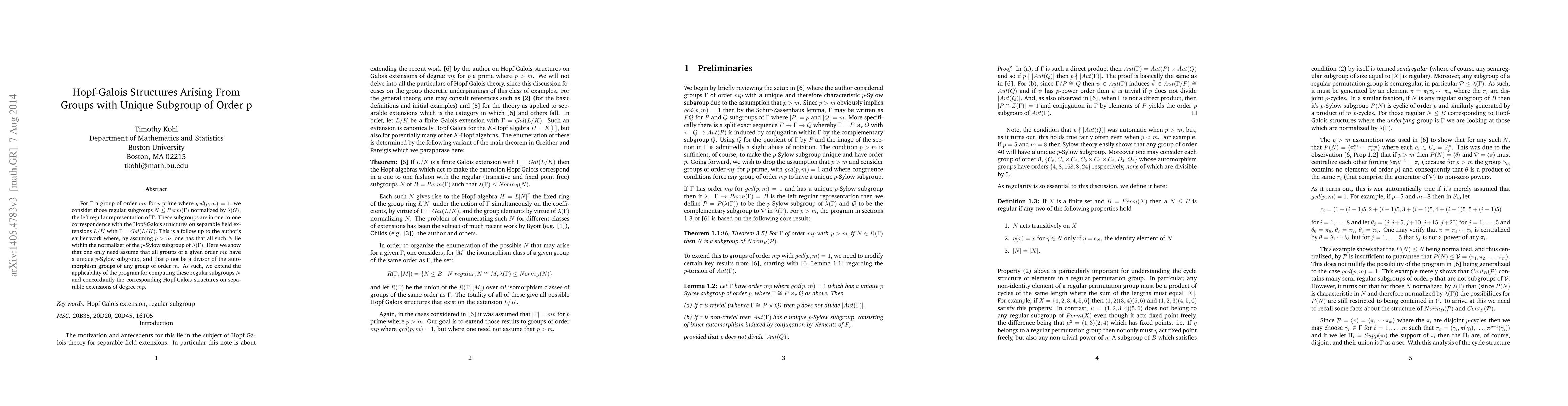 For $\Gamma$ a group of order $mp$ for $p$ prime where $gcd(p,m)=1$, we consider those regular subgroups $N\leq Perm(\Gamma)$ normalized by $\lambda(\Gamma)$, the left regular representation of $\Gamma$. These subgroups are in one-to-one correspondence with the Hopf-Galois structures on separable field extensions $L/K$ with $\Gamma=Gal(L/K)$. This is a follow up to the author's earlier work where, by assuming $p>m$, one has that all such $N$ lie within the normalizer of the $p$-Sylow subgroup of $\lambda(\Gamma)$. Here we show that one only need assume that all groups of a given order $mp$ have a unique $p$-Sylow subgroup, and that $p$ not be a divisor of the automorphism groups of any group of order $m$. As such, we extend the applicability of the program for computing these regular subgroups $N$ and concordantly the corresponding Hopf-Galois structures on separable extensions of degree $mp$.