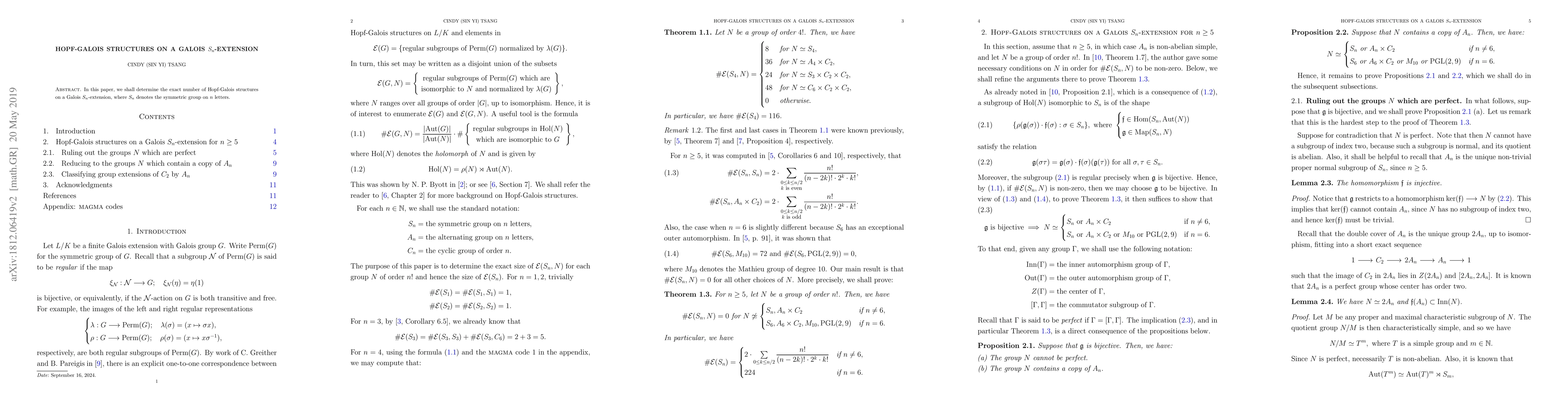 The paper presents detailed group-theoretic arguments to classify and count Hopf-Galois structures on Galois $S_n$-extensions, using properties of perfect groups and the structure of $A_n$.