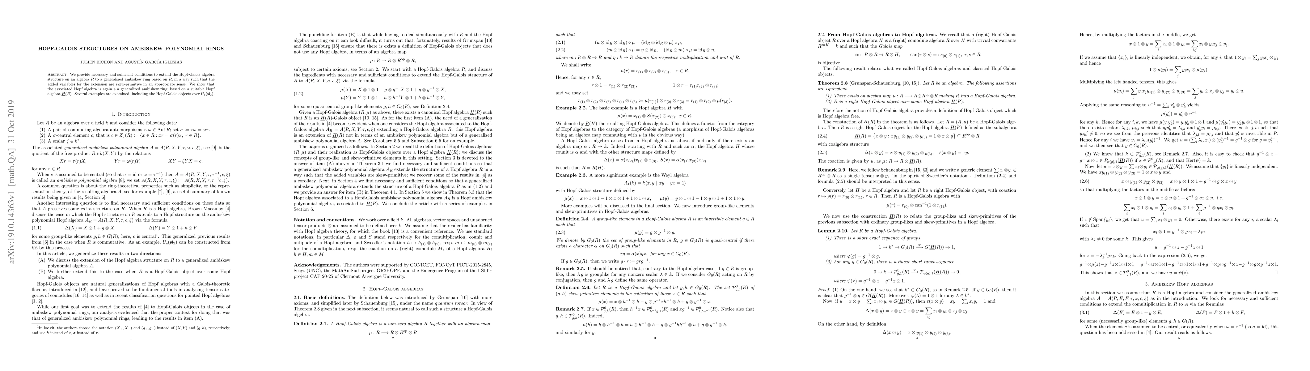 We provide necessary and sufficient conditions to extend the Hopf-Galois algebra structure on an algebra R to a generalized ambiskew ring based on R, in a way such that the added variables for the extension are skew-primitive in an appropriate sense. We show that the associated Hopf algebra is again a a generalized ambiskew ring, based on a suitable Hopf algebra H(R). Several examples are examined, including the Hopf-Galois objects over Uq(sl2).