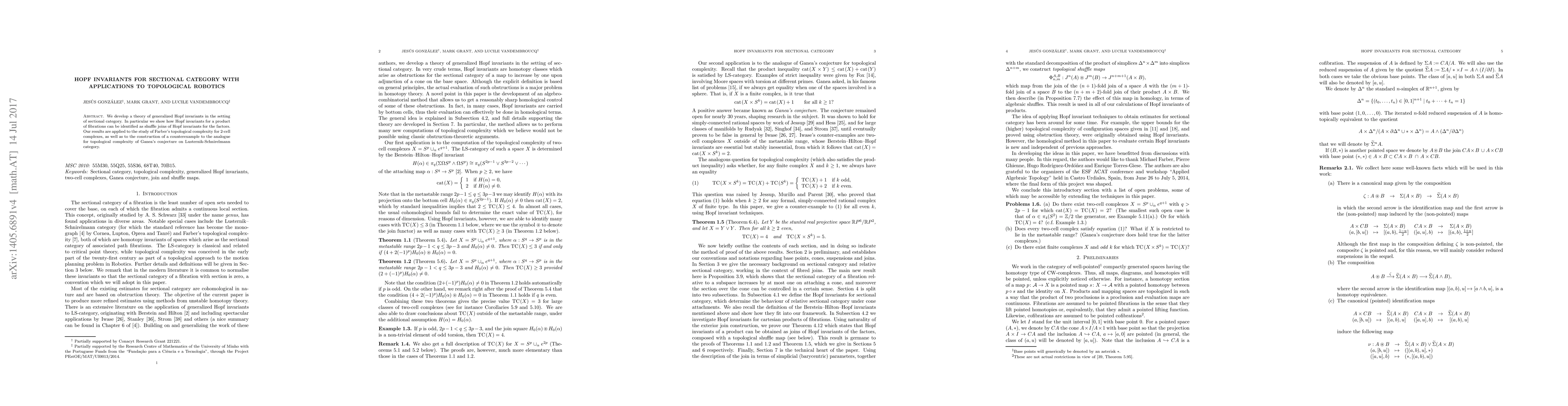 We develop a theory of generalized Hopf invariants in the setting of sectional category. In particular we show how Hopf invariants for a product of fibrations can be identified as shuffle joins of Hopf invariants for the factors. Our results are applied in the study of Farber's topological complexity for 2-cell complexes, as well as in the construction of a counter-example to the analogue for topological complexity of Ganea's conjecture on Lusternik-Schnirelmann category.