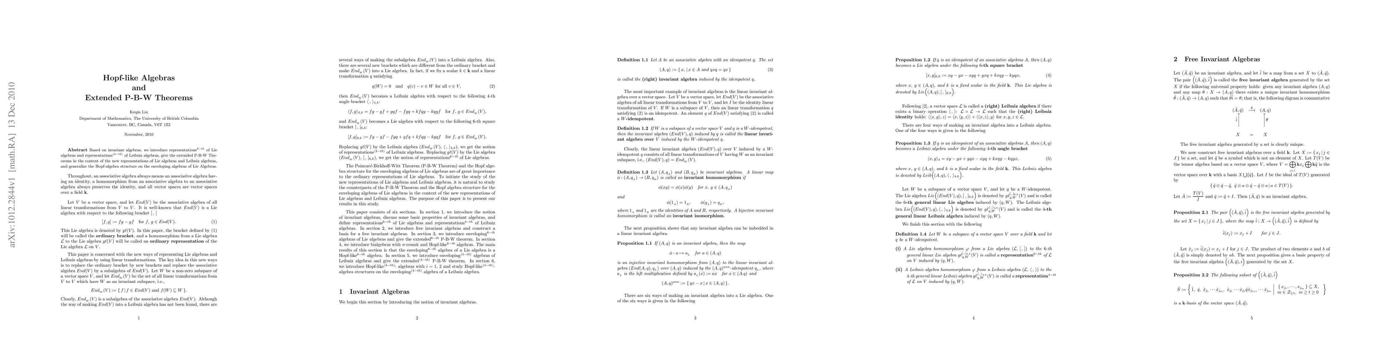 Based on invariant algebras, we introduce representations$^{6-th}$ of Lie algebras and representations$^{< 4-th>}$ of Leibniz algebras, give the extended P-B-W Theorems in the context of the new representations of Lie algebras and Leibniz algebras, and generalize the Hopf-algebra structure on the enveloping algebras of Lie Algebras.