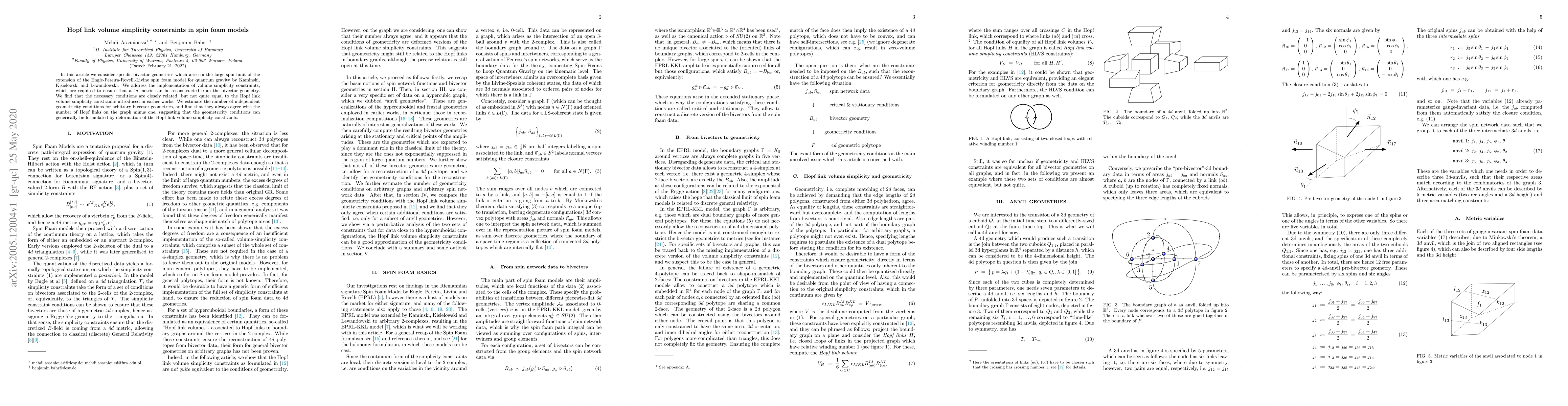 This paper investigates the volume simplicity constraints in spin foam models for quantum gravity, focusing on bivector geometries in the large-spin limit. The study finds that these constraints are closely related to, but not identical with, earlier Hopf link volume simplicity constraints, and proposes that the geometricity conditions can be generally formulated by deforming these Hopf link constraints.