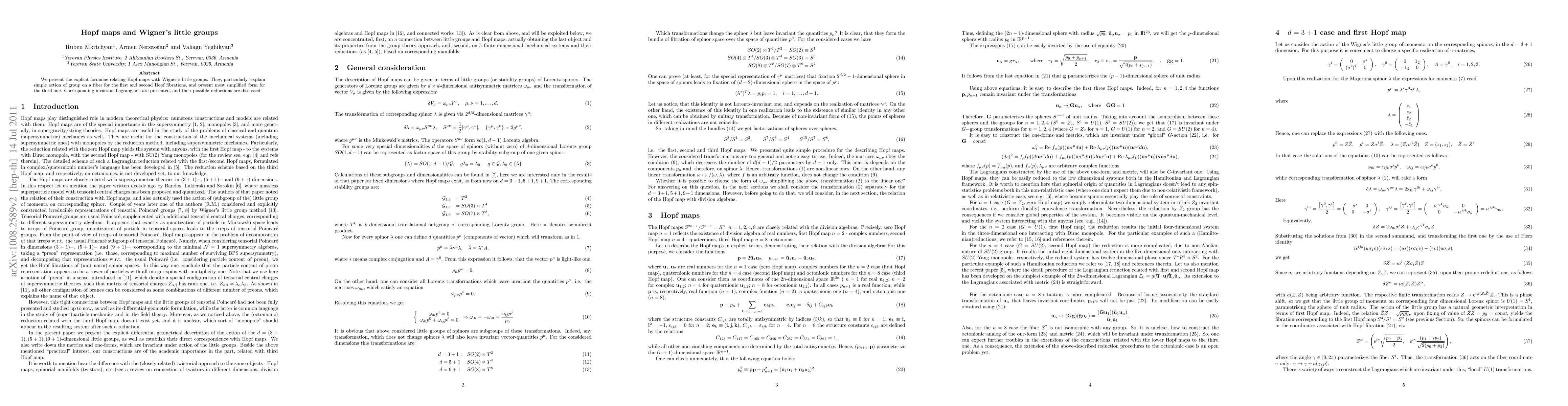 This paper establishes explicit formulae linking Hopf maps to Wigner's little groups, elucidating their actions on fibers for the first and second Hopf fibrations, and simplifying the third. It also presents invariant Lagrangians and discusses their potential reductions.