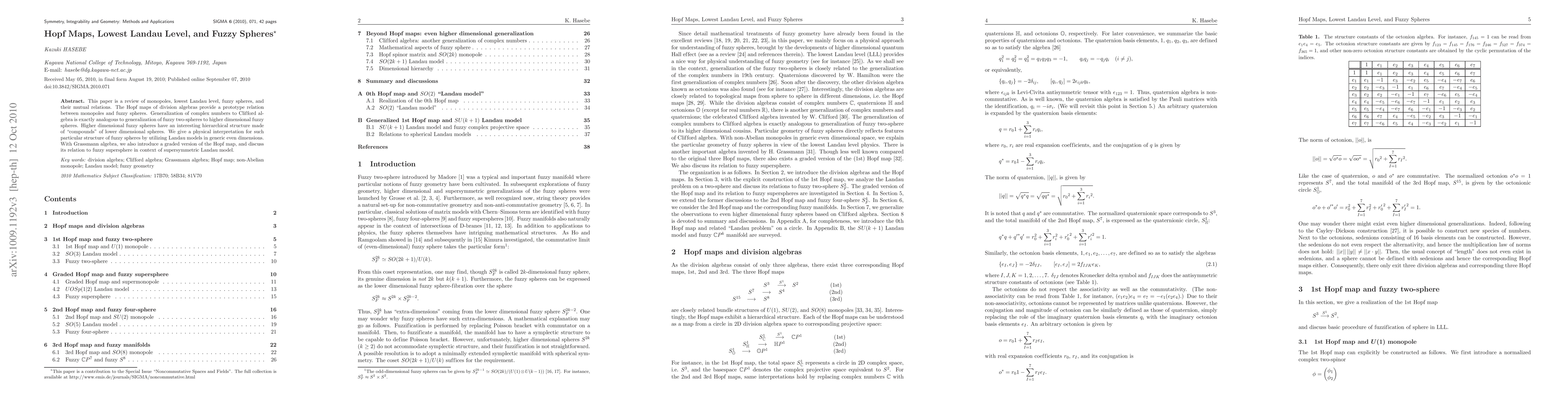 This paper reviews the connections between monopoles, the lowest Landau level, and fuzzy spheres, highlighting the role of Hopf maps in linking these concepts. It explores the hierarchical structure of higher-dimensional fuzzy spheres and provides a physical interpretation using Landau models, along with a graded Hopf map in the context of supersymmetric Landau models.