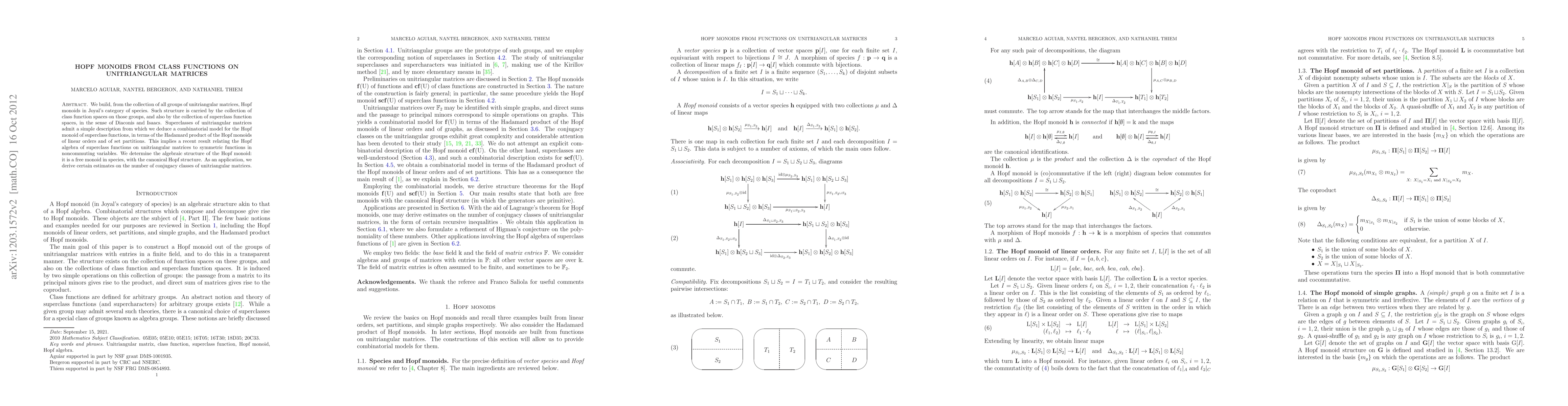 This paper constructs Hopf monoids from class functions on unitriangular matrices and identifies their algebraic structure as a free monoid in species. It also connects superclass functions on these matrices to symmetric functions in noncommuting variables and provides estimates on their conjugacy classes.