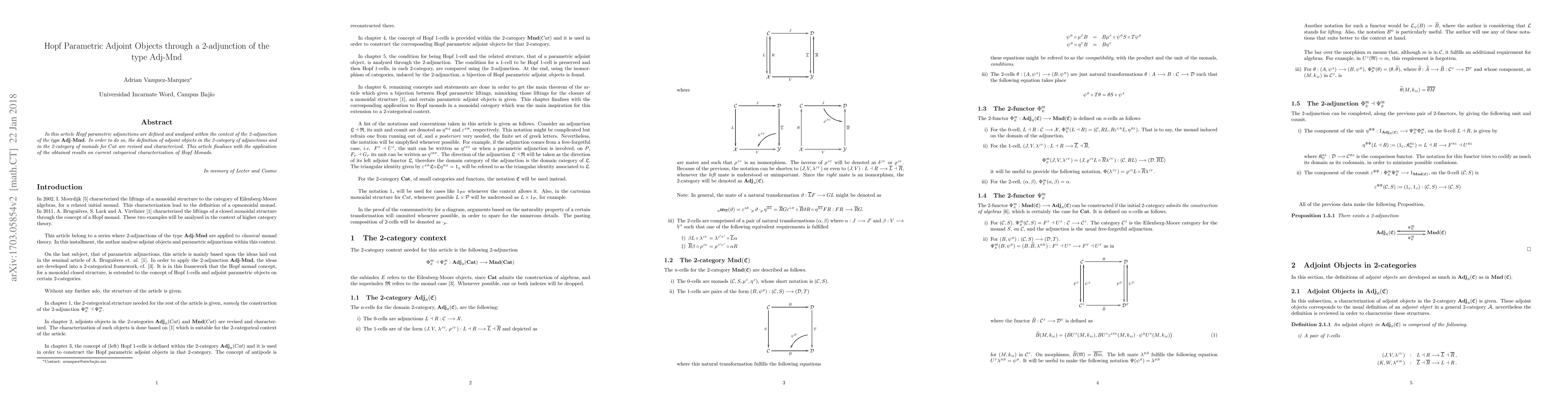 This paper defines and analyzes Hopf parametric adjunctions within the 2-adjunction framework of $\mathbf{Adj}$-$\mathbf{Mnd}$, revising and characterizing adjoint objects in the respective 2-categories, and applies these results to the categorical characterization of Hopf Monads.