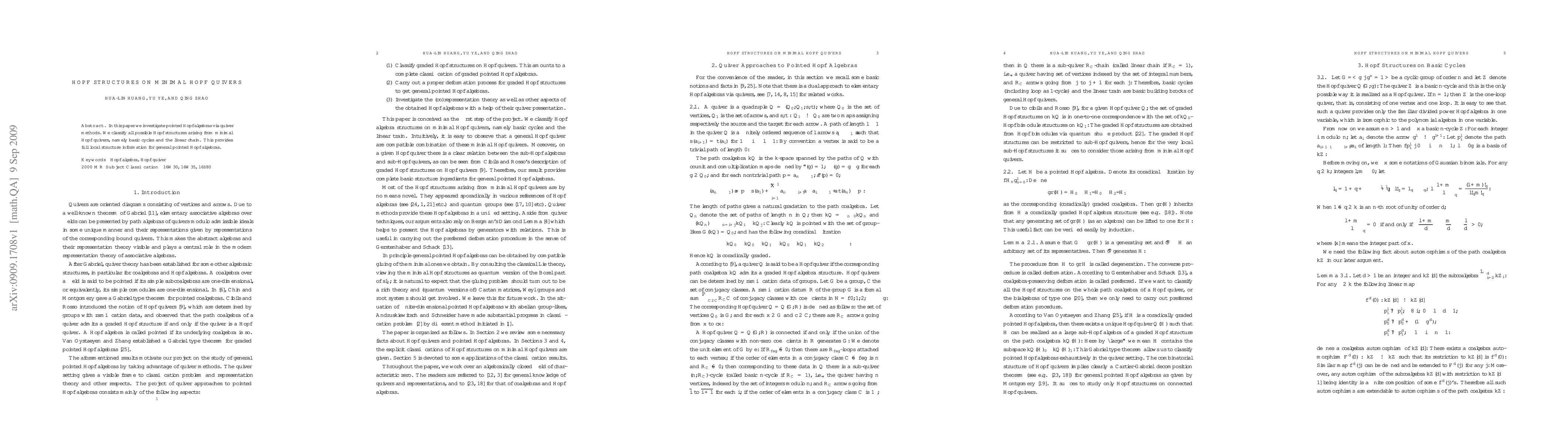 The paper classifies Hopf structures on minimal Hopf quivers, specifically basic cycles and linear chains, providing detailed local structural information for pointed Hopf algebras. This classification offers comprehensive insights into the local structure of such Hopf algebras.