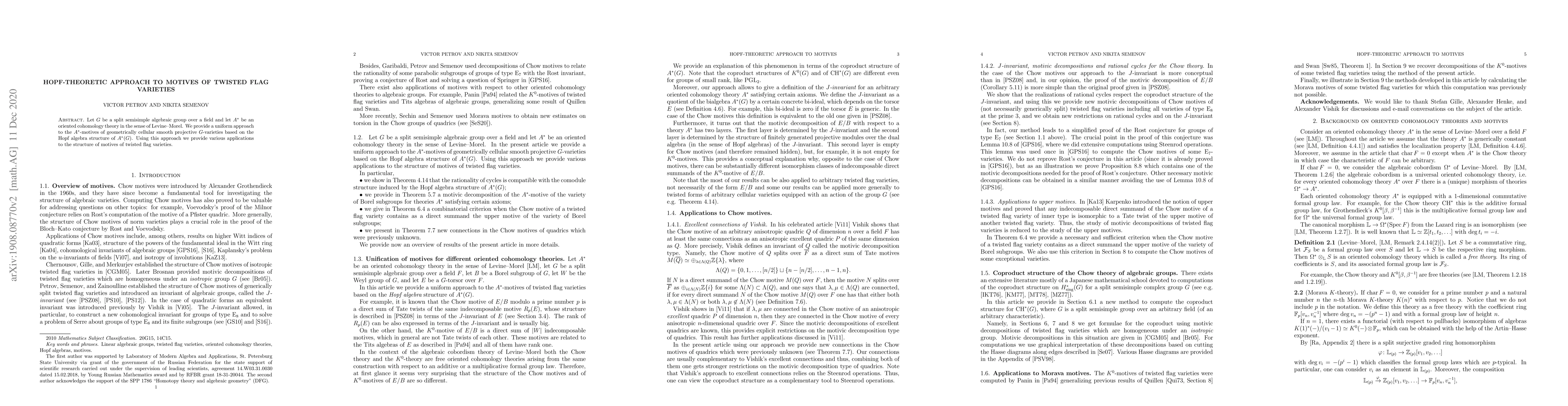 This paper introduces a Hopf-algebraic method to study $A^*$-motives of smooth projective $G$-varieties, particularly focusing on twisted flag varieties, and uses this framework to derive new insights into their structural properties.