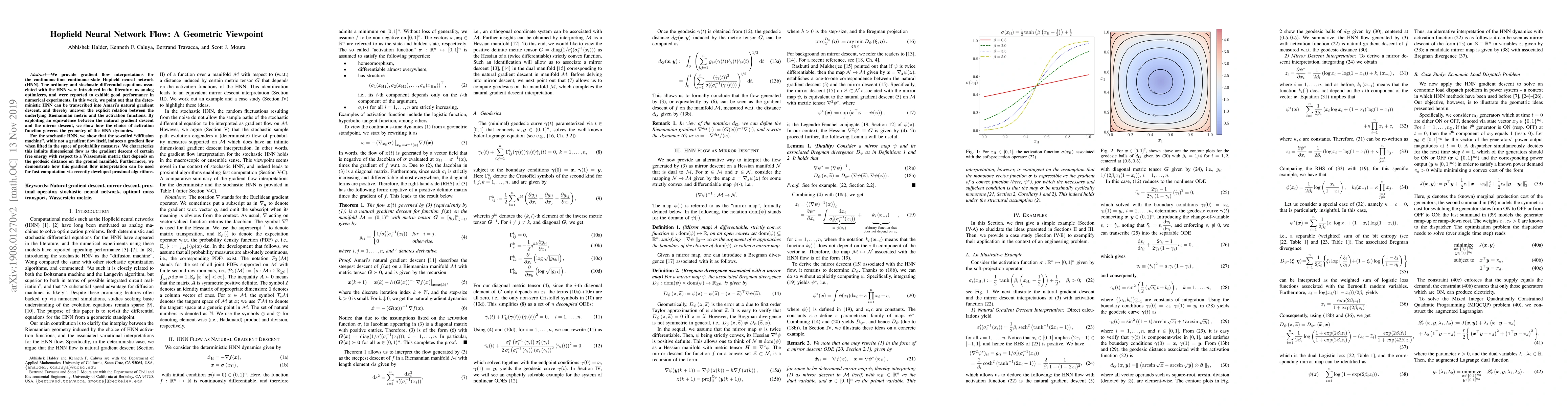 This paper explores the gradient flow interpretations of the Hopfield neural network (HNN), revealing its connection to Amari's natural gradient descent and the influence of activation functions on its geometry. It also extends these insights to the stochastic HNN, showing it induces a gradient flow in the space of probability measures via a Wasserstein metric.