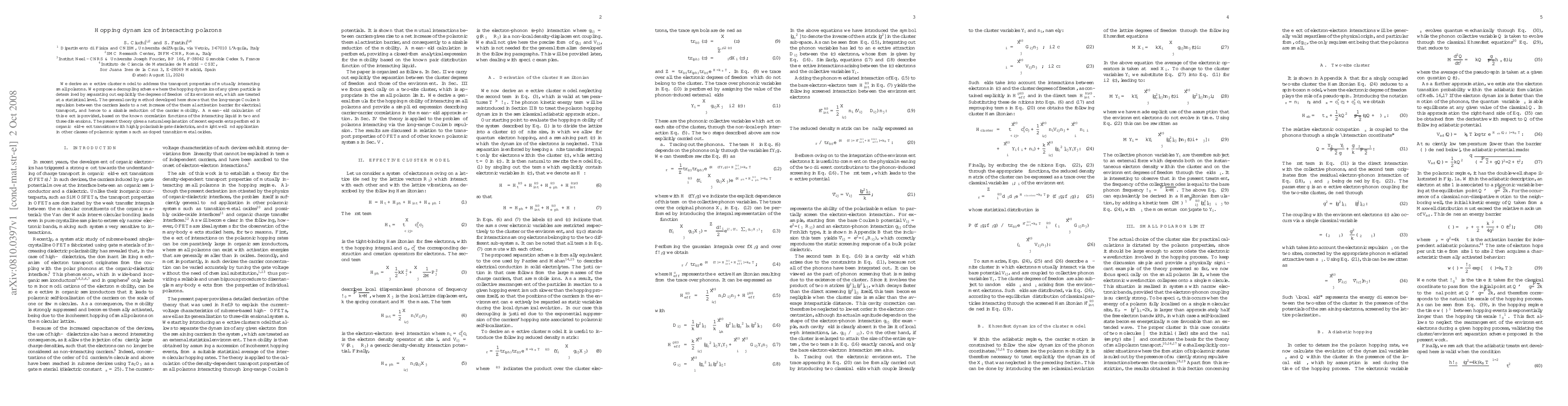 We derive an effective cluster model to address the transport properties of mutually interacting small polarons. We propose a decoupling scheme where the hopping dynamics of any given particle is determined by separating out explicitly the degrees of freedom of its environment, which are treated as a statistical bath. The general cavity method developed here shows that the long-range Coulomb repulsion between the carriers leads to a net increase of the thermal activation barrier for electrical transport, and hence to a sizable reduction of the carrier mobility. A mean-field calculation of this effect is provided, based on the known correlation functions of the interacting liquid in two and three dimensions. The present theory gives a natural explanation of recent experiments performed in organic field-effect transistors with highly polarizable gate dielectrics, and might well find application in other classes of polaronic systems such as doped transition-metal oxides.