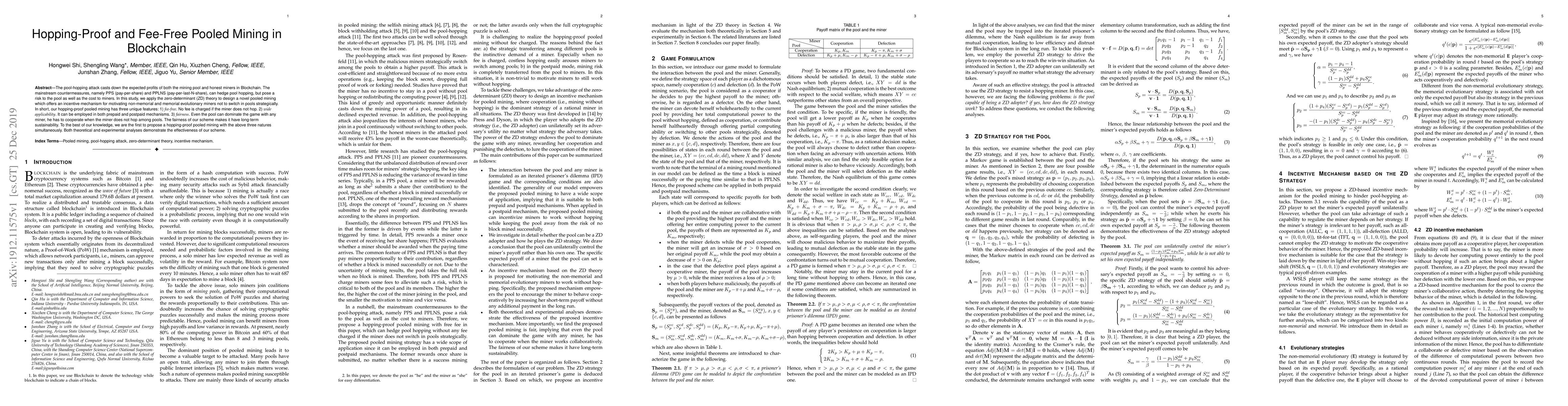 This research paper proposes a novel pooled mining system that prevents pool-hopping attacks while offering fee-free and fair incentives for miners to cooperate with the pool.