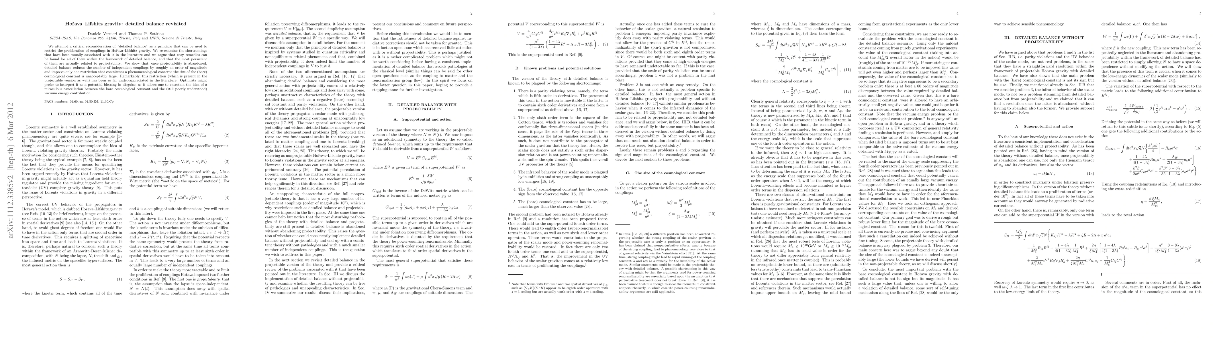 This paper revisits the principle of "detailed balance" to restrict coupling proliferation in Horava-Lifshitz gravity, arguing that it can mitigate the usual shortcomings when projectability is abandoned. The principle significantly reduces the number of independent couplings but imposes a phenomenological constraint on the cosmological constant size.