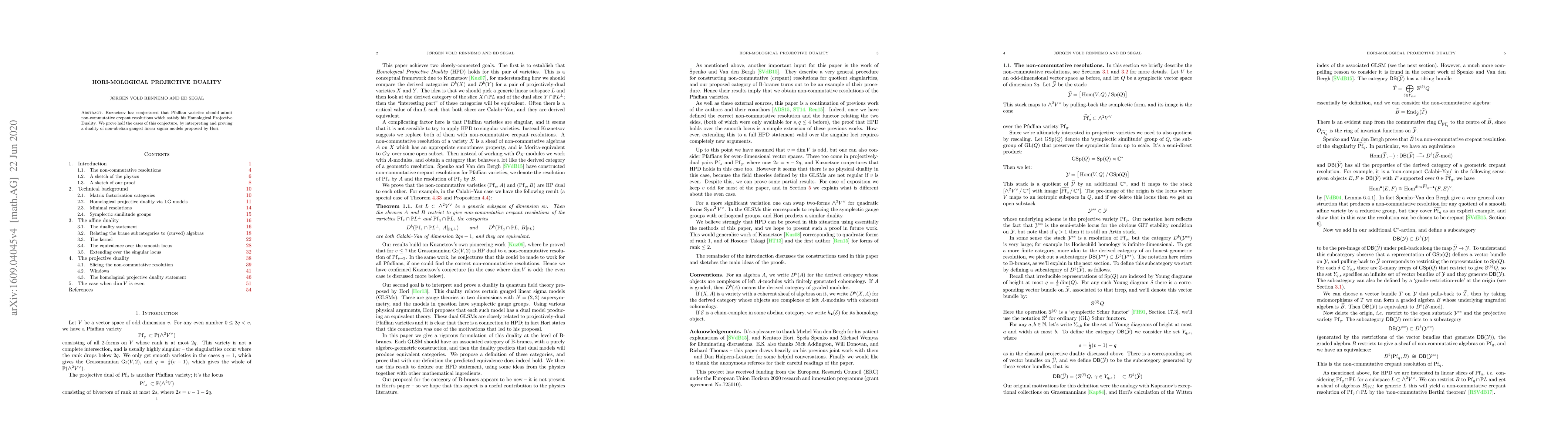 Kuznetsov has conjectured that Pfaffian varieties should admit non-commutative crepant resolutions which satisfy his Homological Projective Duality. We prove half the cases of this conjecture, by interpreting and proving a duality of non-abelian gauged linear sigma models proposed by Hori.