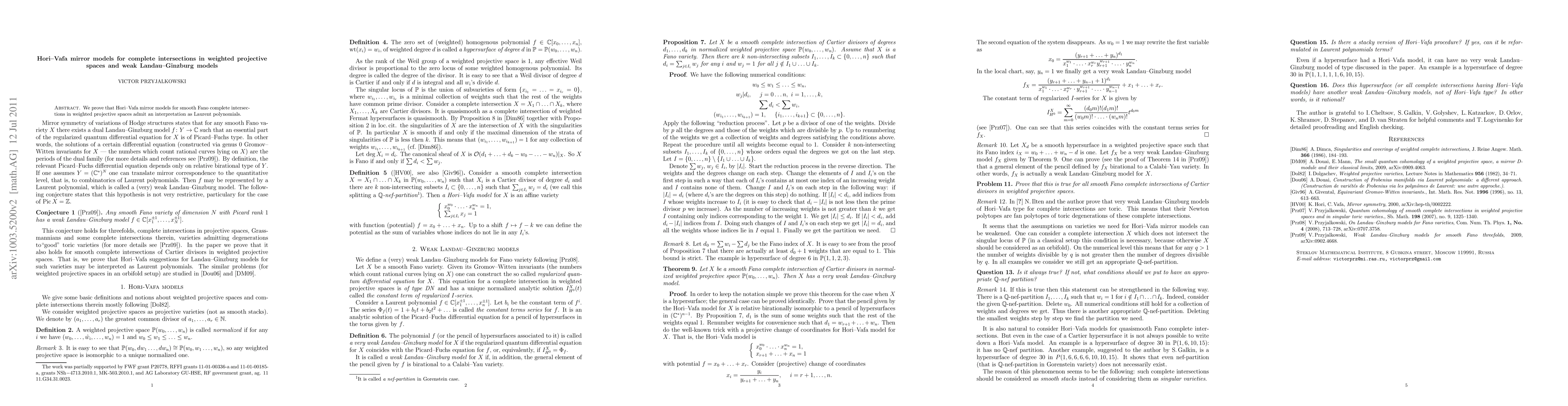 Summary: The paper establishes that Hori-Vafa mirror models for smooth Fano complete intersections in weighted projective spaces correspond to Laurent polynomials, linking algebraic geometry and string theory.