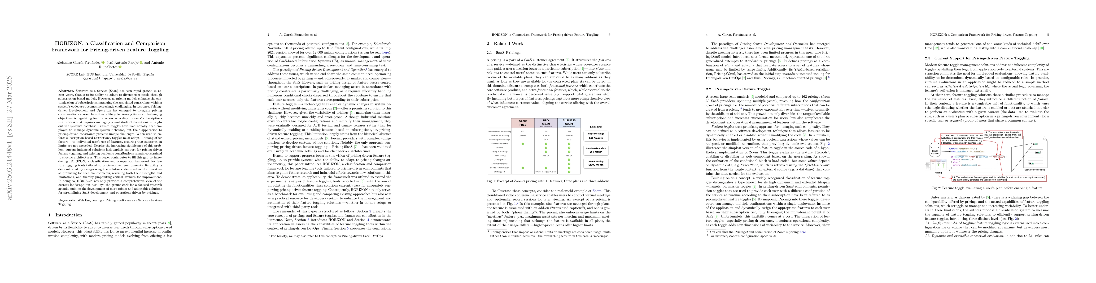 This paper introduces HORIZON, a framework for pricing-driven feature toggling that classifies and compares existing solutions to identify areas for improvement in software as a Service (SaaS) development and operations.