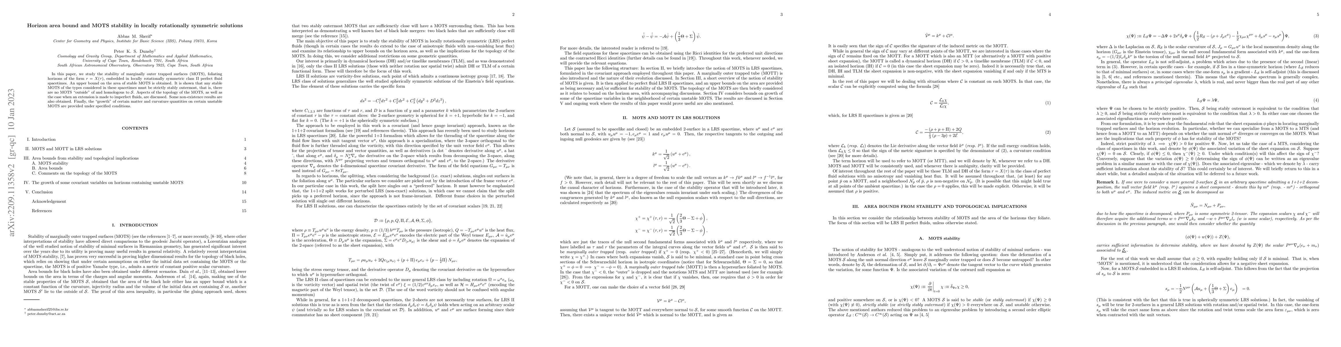 This paper investigates the stability of marginally outer trapped surfaces (MOTS) in locally rotationally symmetric class II perfect fluid spacetimes, establishing an upper bound on the area of stable MOTS and proving that any stable MOTS must be strictly stably outermost. It also explores the implications for imperfect fluids and provides insights into the behavior of matter and curvature on unstable MOTS.
