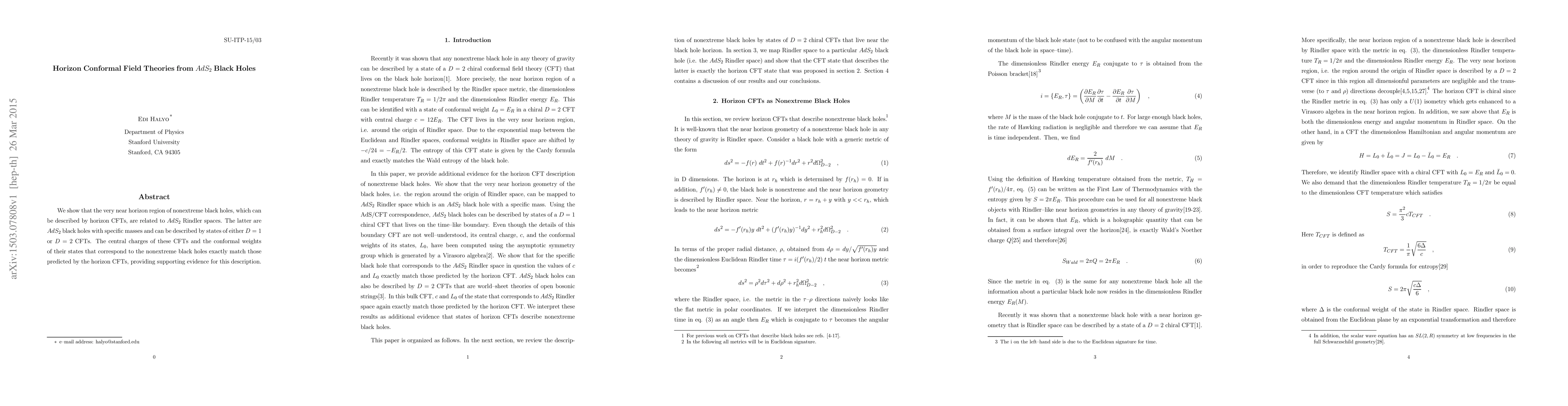 This paper demonstrates a connection between the near horizon region of nonextreme black holes and $AdS_2$ Rindler spaces, showing that these regions can be described by horizon conformal field theories (CFTs). The matching of central charges and conformal weights between these CFTs and the predicted horizon CFTs provides strong evidence for this relationship.