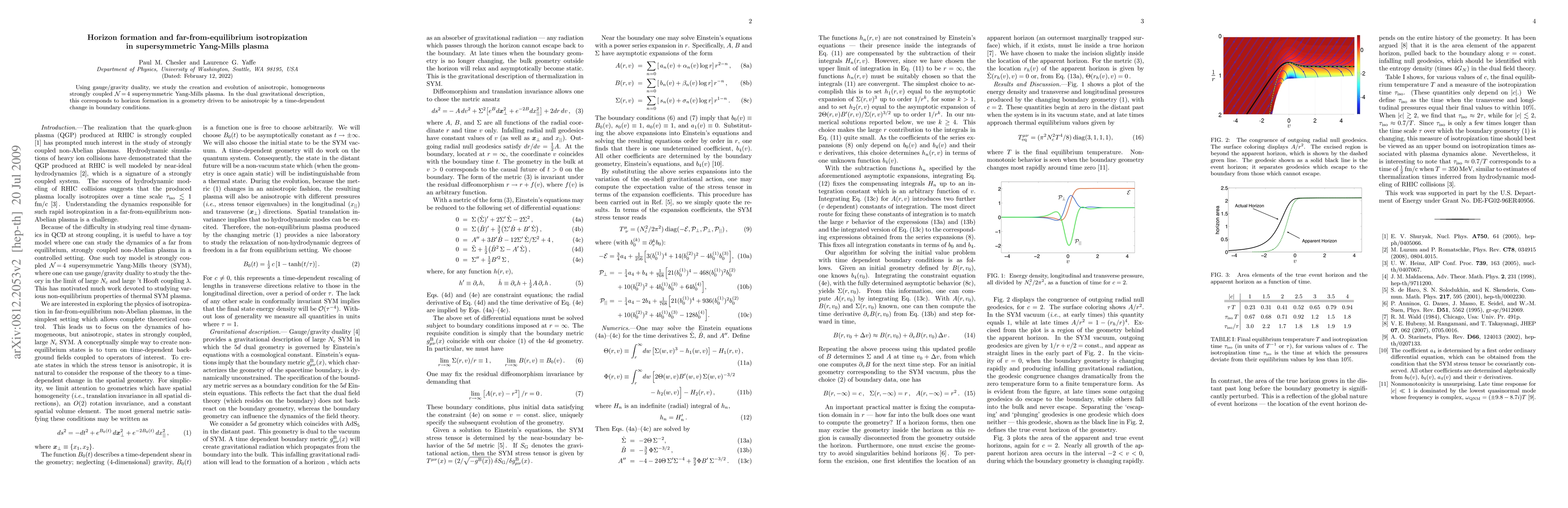 This paper investigates the formation and evolution of anisotropic, homogeneous strongly coupled $\mathcal N=4$ supersymmetric Yang-Mills plasma using gauge/gravity duality, focusing on horizon formation and the process of isotropization in an anisotropic geometry driven by time-dependent boundary conditions.