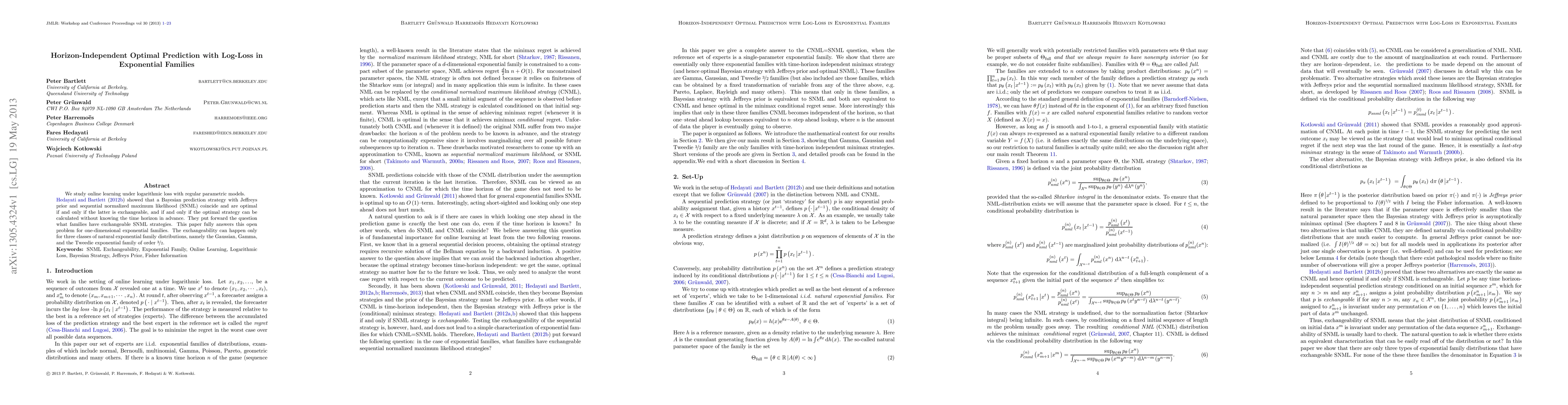 This paper finds that only three types of exponential family distributions - Gaussian, Gamma, and Tweedie order 3/2 - have exchangeable strategies for optimal prediction with log-loss in online learning. It provides a solution to an open problem in the field of online learning.
