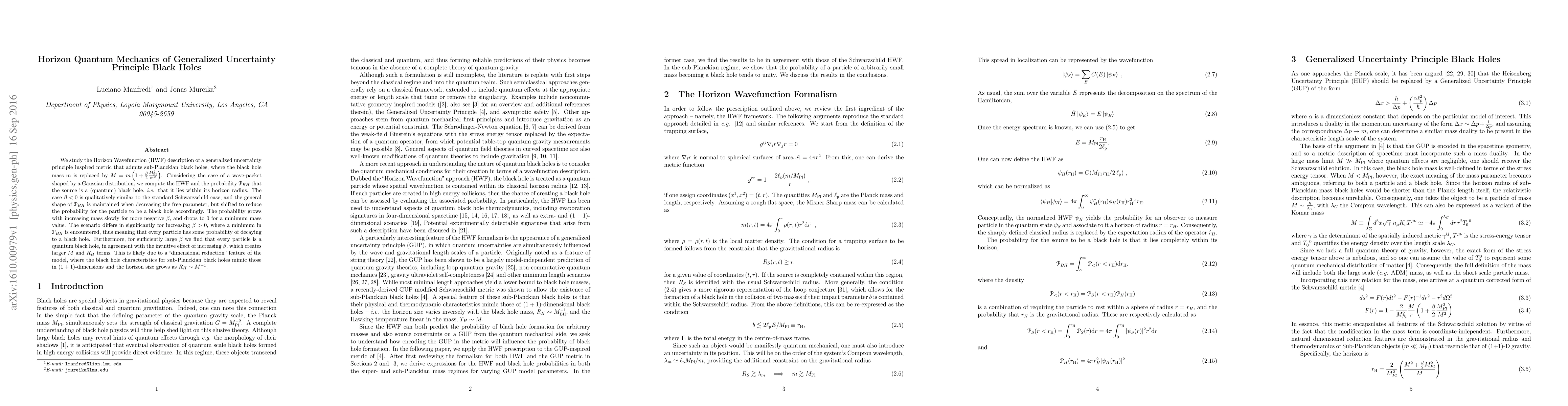 This paper explores the Horizon Wavefunction (HWF) for black holes under a generalized uncertainty principle (GUP) metric, revealing that sub-Planckian black holes can exist. It finds that for sufficiently large positive GUP parameters, all particles have a probability of becoming quantum black holes, due to a dimensional reduction effect that increases horizon size and mass.