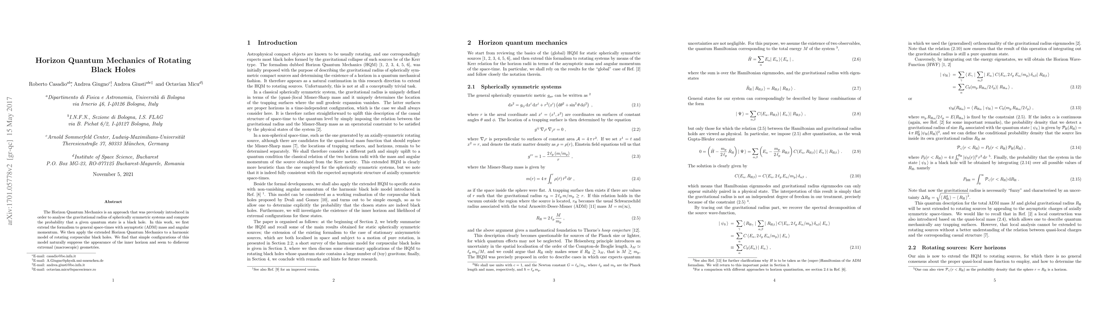 This paper extends the Horizon Quantum Mechanics to analyze rotating black holes, applying it to a harmonic model and finding that simple configurations suppress inner horizons and disfavor extremal geometries.