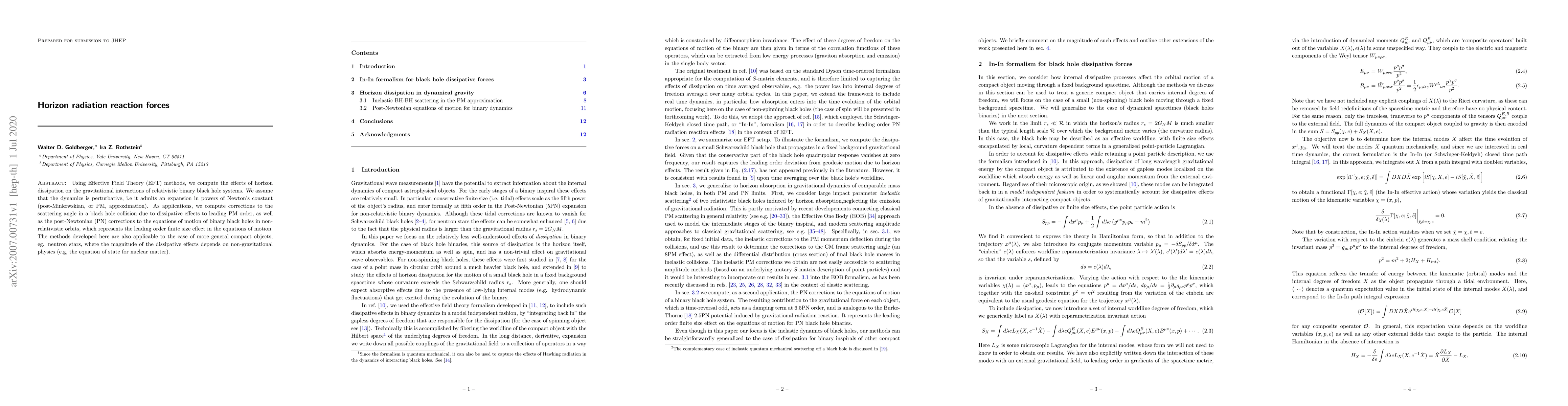 Using Effective Field Theory (EFT) methods, we compute the effects of horizon dissipation on the gravitational interactions of relativistic binary black hole systems. We assume that the dynamics is perturbative, i.e it admits an expansion in powers of Newton's constant (post-Minkowskian, or PM, approximation). As applications, we compute corrections to the scattering angle in a black hole collision due to dissipative effects to leading PM order, as well as the post-Newtonian (PN) corrections to the equations of motion of binary black holes in non-relativistic orbits, which represents the leading order finite size effect in the equations of motion. The methods developed here are also applicable to the case of more general compact objects, eg. neutron stars, where the magnitude of the dissipative effects depends on non-gravitational physics (e.g, the equation of state for nuclear matter).