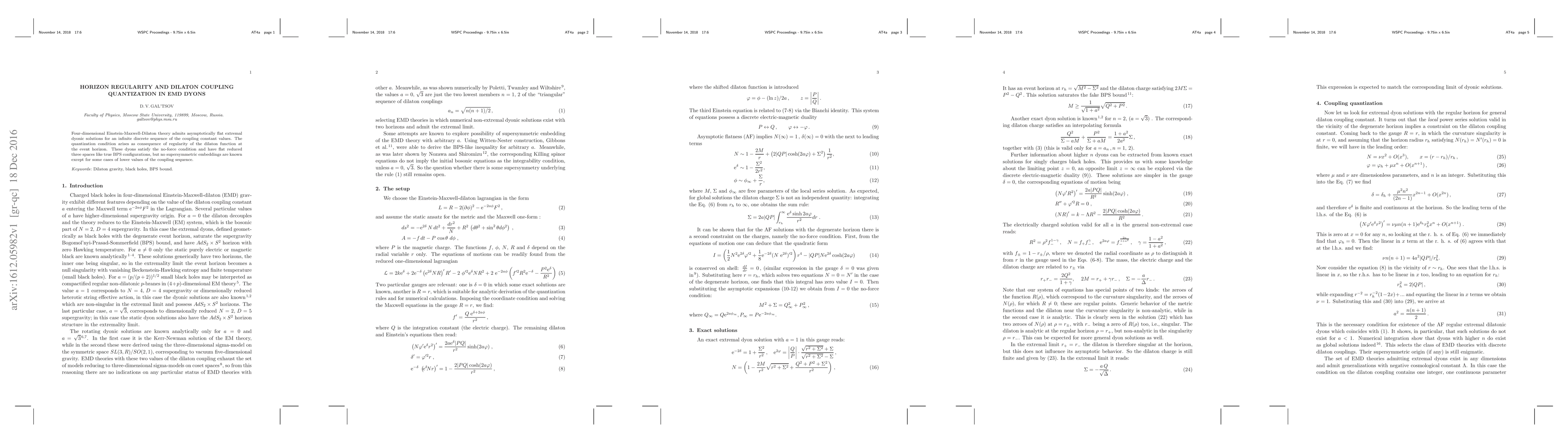 The paper explores four-dimensional Einstein-Maxwell-Dilaton theory, finding extremal dyonic solutions for a discrete sequence of coupling constants. These solutions, regular at the event horizon, satisfy no-force conditions and flat three-space characteristics, though supersymmetric embeddings are not universally known.
