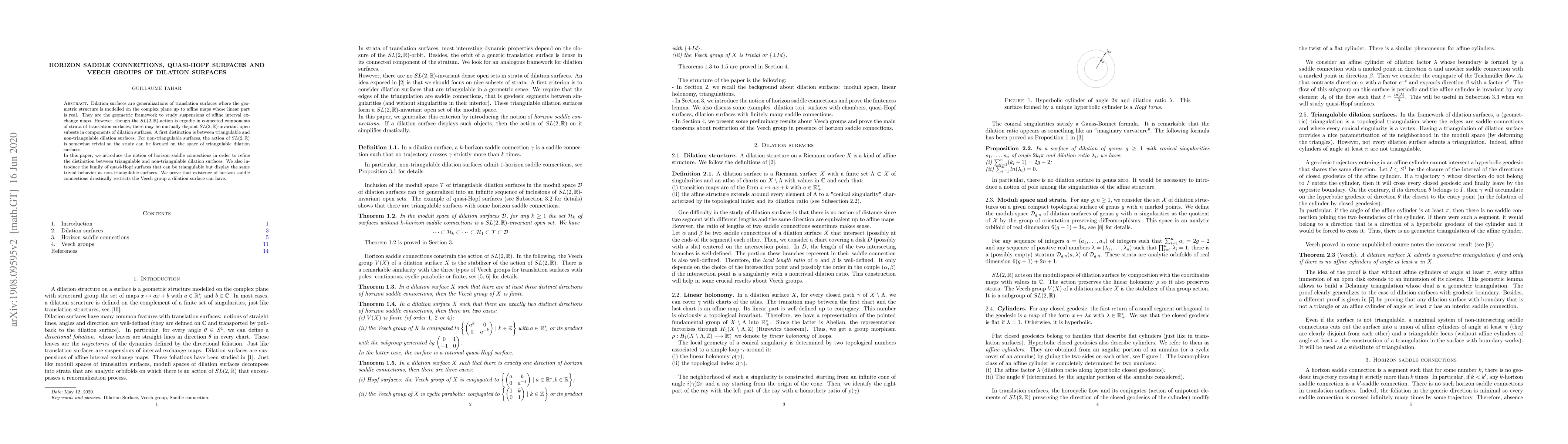 This paper introduces horizon saddle connections to distinguish between triangulable and non-triangulable dilation surfaces. It also defines quasi-Hopf surfaces, which behave trivially despite being triangulable, and proves that horizon saddle connections significantly limit the Veech group associated with dilation surfaces.