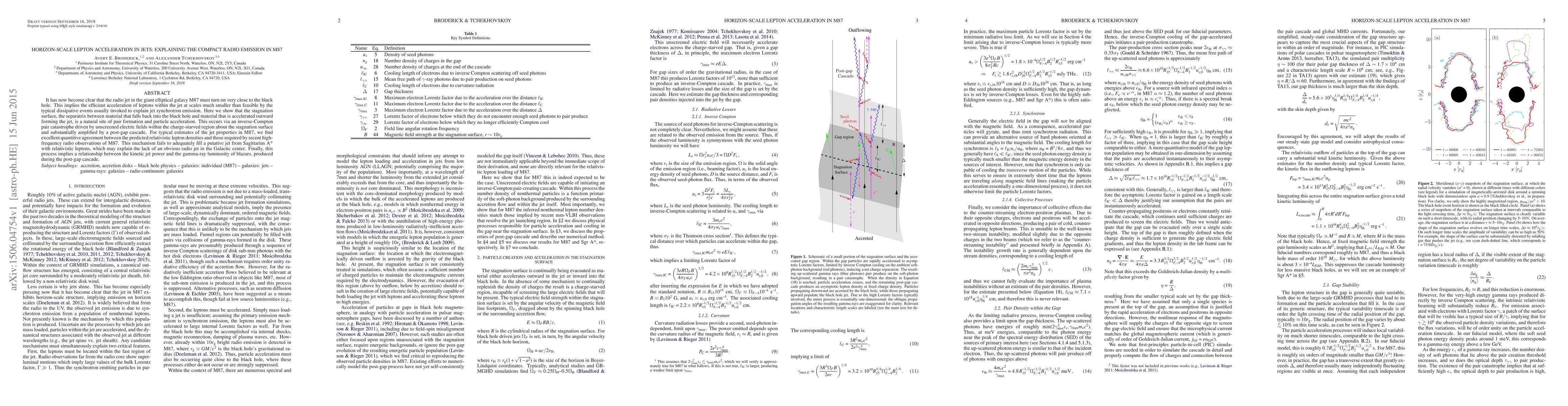 This paper proposes a mechanism for efficient lepton acceleration near the black hole in M87's radio jet, driven by an inverse-Compton pair catastrophe in the stagnation surface region, explaining the compact radio emission. This mechanism does not apply to Sagittarius A*, potentially explaining the lack of a prominent radio jet there.